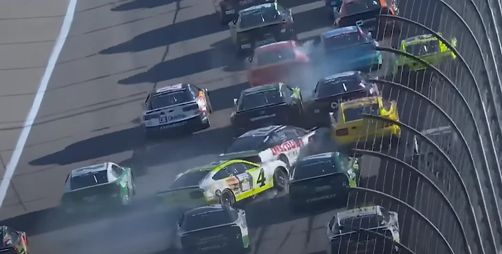 После рестарта разворачивается Хосевар, а уже после следующего рестарта происходит главный хайлайт этой гонки. Немечек зажимает Зейна Смита между собой и стеной, что приводит к тому, что второй переворачивается на бок, проезжает несколько десятков метров по стене в вертикальном положении, а затем, перевернувшись еще раз, останавливается плашмя