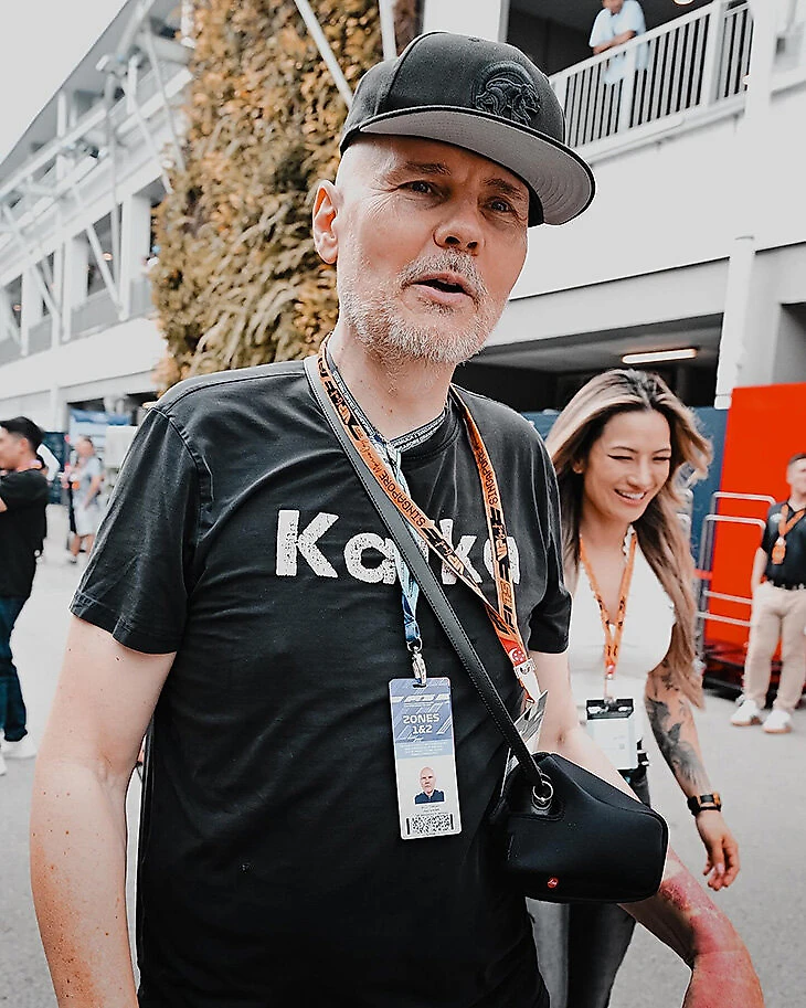 Одним из хедлайнеров музыкального феста на площадке Гран-при в этом году отрабатывала легендарная группа The Smashing Pumpkins – и ее участники пришли посмотреть заезды и паддок задолго до выхода на сцену.