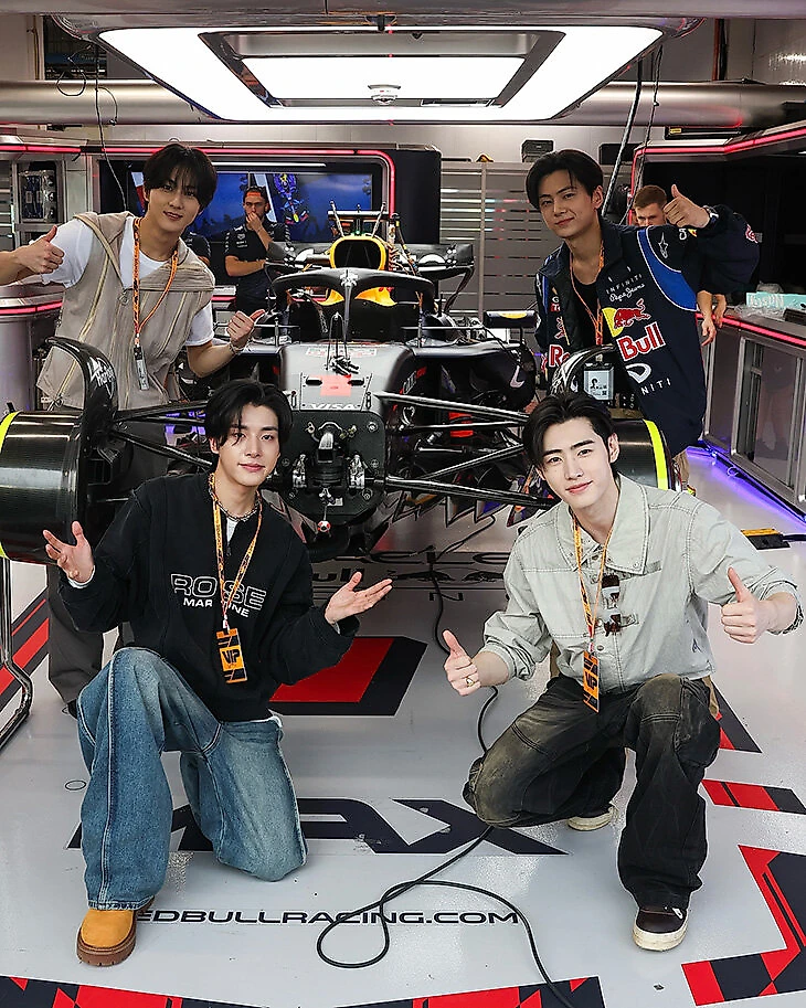 Enhypen остались и на трековые дни – всем видом демонстрируя, как же кайфово в паддок-клабе с VIP-билетом.