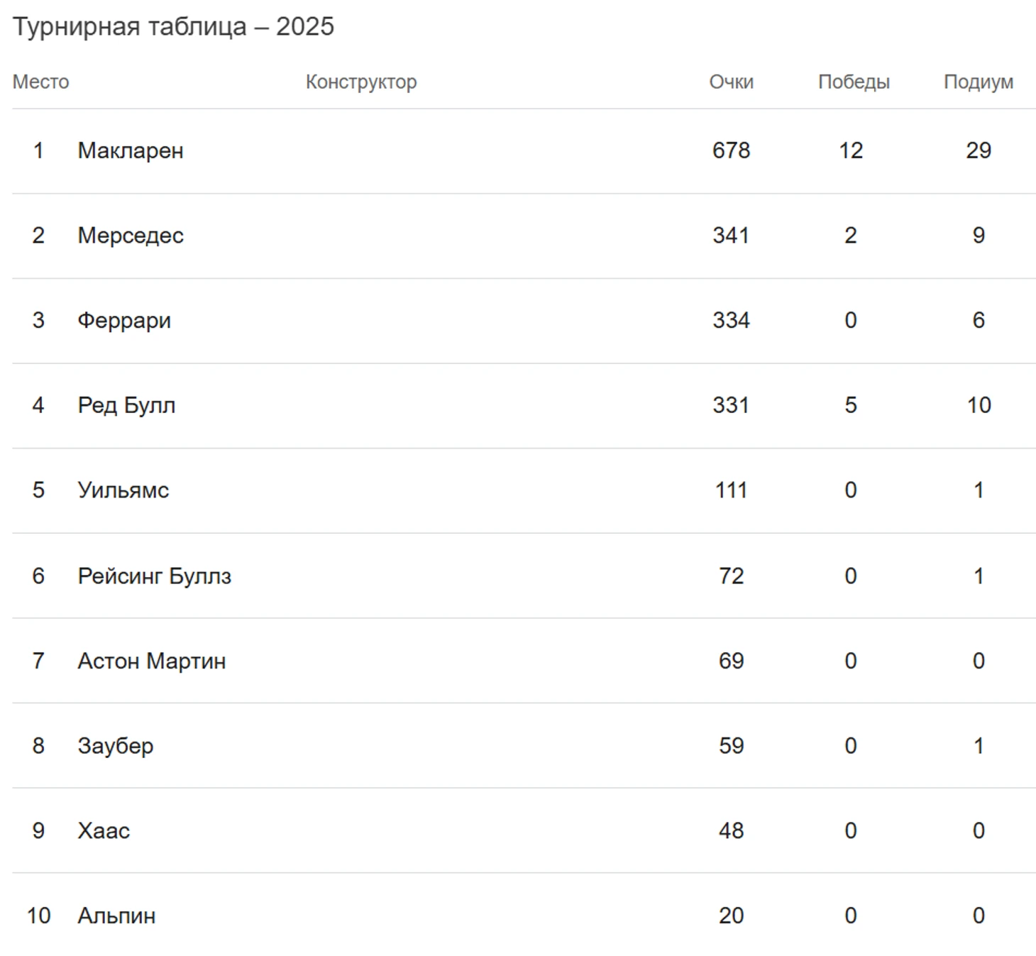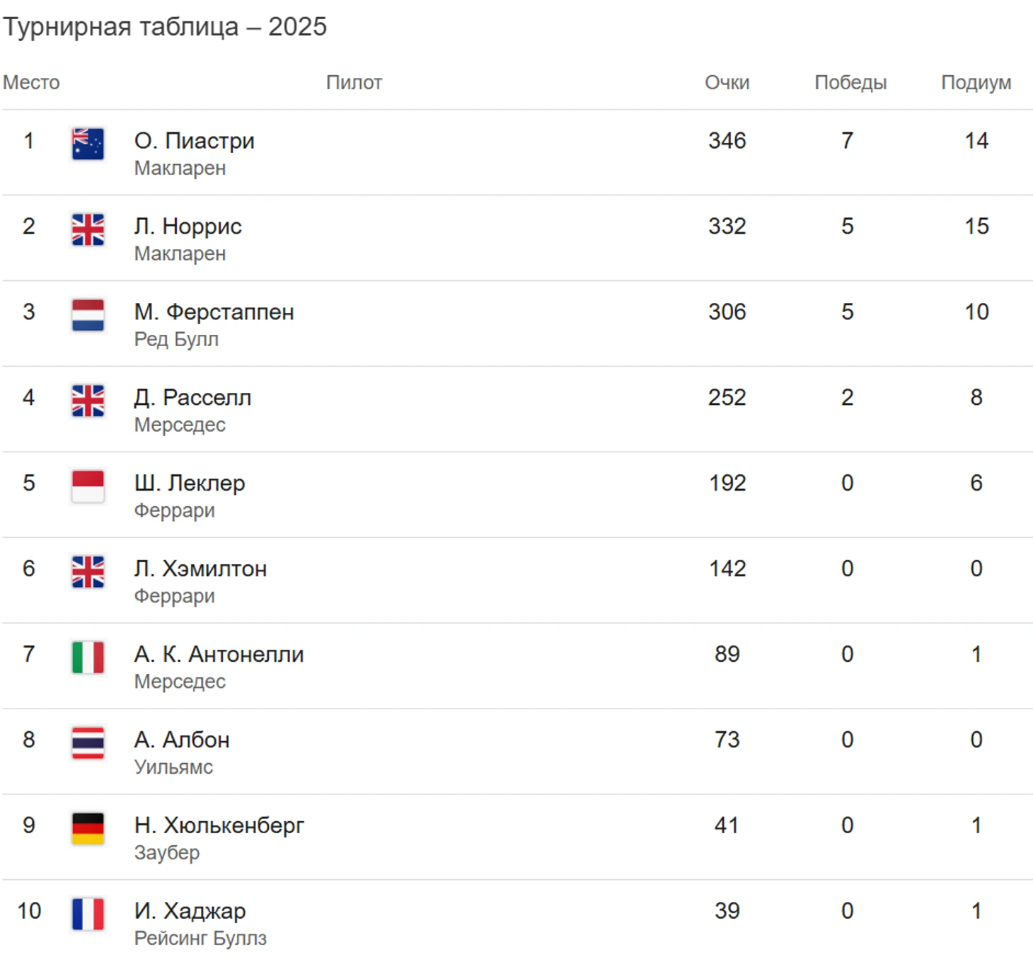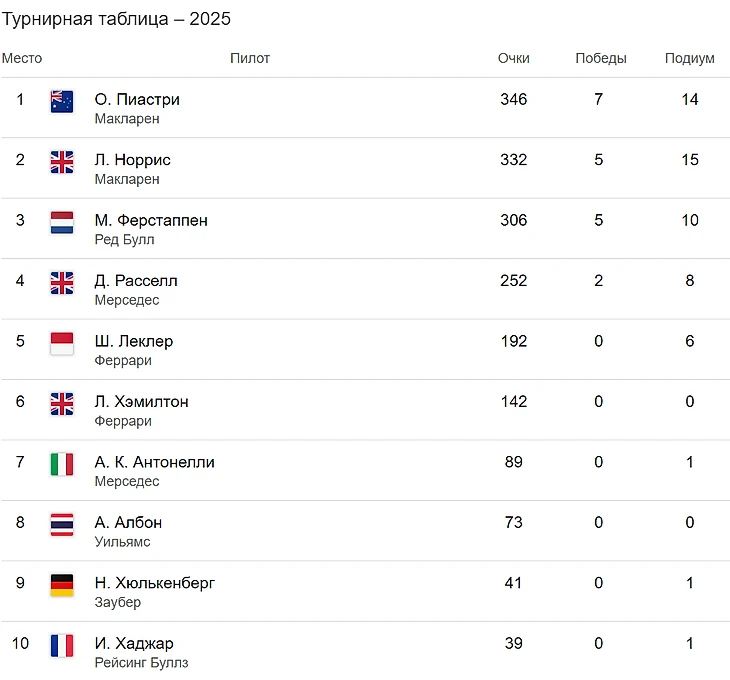 Это сократило его отставание от лидера чемпионата Оскара Пиастри до 63 очков при шести оставшихся гонках. Однако почти идеальный результат в Остине ещё больше уменьшил этот отрыв, подготовив почву для захватывающей борьбы за титул по мере приближения завершения сезона 2025 года.