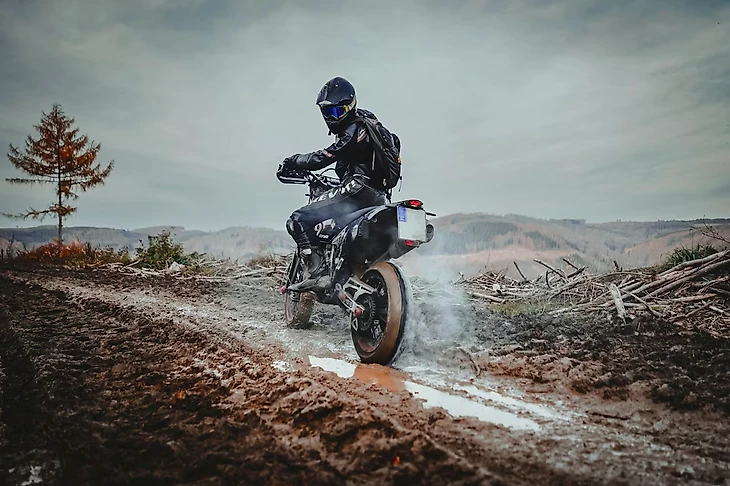 Небольшой вес. При 117 кг мотоцикл остается маневренным и предсказуемым даже в узких лесных дорожках. Это облегчает езду по пересеченной местности и помогает лучше контролировать байк при падениях.