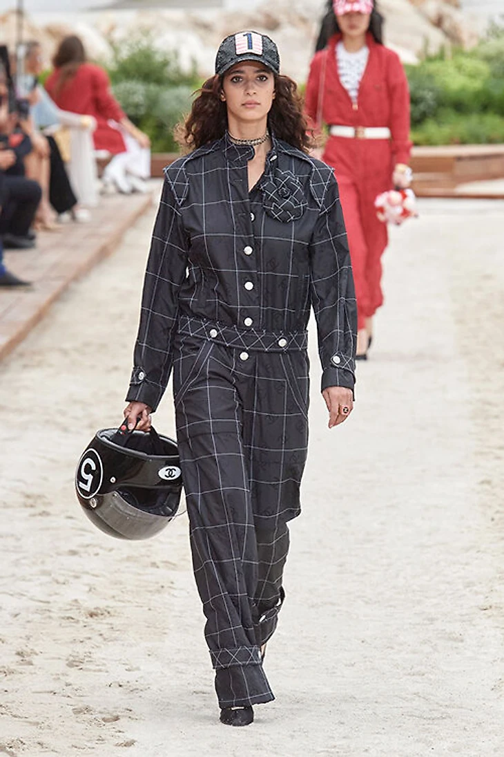 Параллельно гоночная эстетика выплеснулась на подиумы. За 2020-е в Париже Dior показывали перчатки в духе гоночной экипировки, в Монте-Карло Chanel – комбинезоны и мотоциклетные шлемы в руках моделей, Louis Vuitton и Balenciaga буквально цитировали гоночные костюмы, а Loewe и Lanvin брали шире и ссылались на автокультуру в целом.