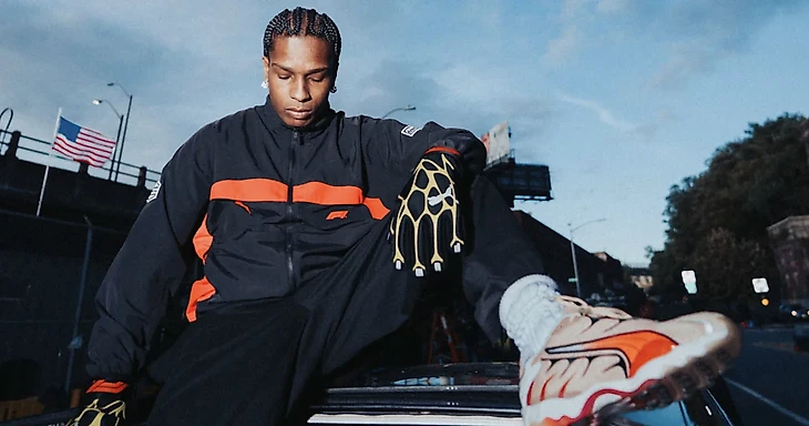 В рамках партнерства A$AP Rocky и PUMA уже выпустили несколько коллекций, показывая капсулы прямо в контексте гоночных уик-эндов. Первой парой, в которой Роки появился в этой истории, стали ретро-кроссовки PUMA Inhale — силуэт начала нулевых, перезапущенный как часть автоспортивной коллекции 2025 года. В нулевых эти кроссовки были на пике популярности, но чаще использовались для бега, а сейчас – стилизованы под автоспортивную эстетику. Новые PUMA Inhale (которые продаются в AMAZING RED) – классический пример того, как ностальгическая модель возвращается на улицы вместе с новой волной интереса к «Формуле-1».