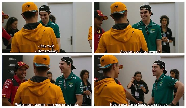 Во время общения с журналистами Льюис Хэмилтон начал рассказ, что у него не особо растут усы, и австралиец шепотом спросил у юного Ландо, появились ли у него первые волосы в интимной зоне. Первый порыв смеха сдержать удалось, но Риккардо добил мимикой – и Ландо прорвало.