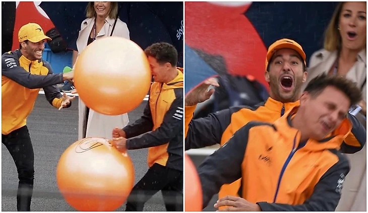 4. Эпичные фото из-за мяча. Риккардо не упустил случая устроить сюрприз Норрису – а тот подвоха не ожидал.