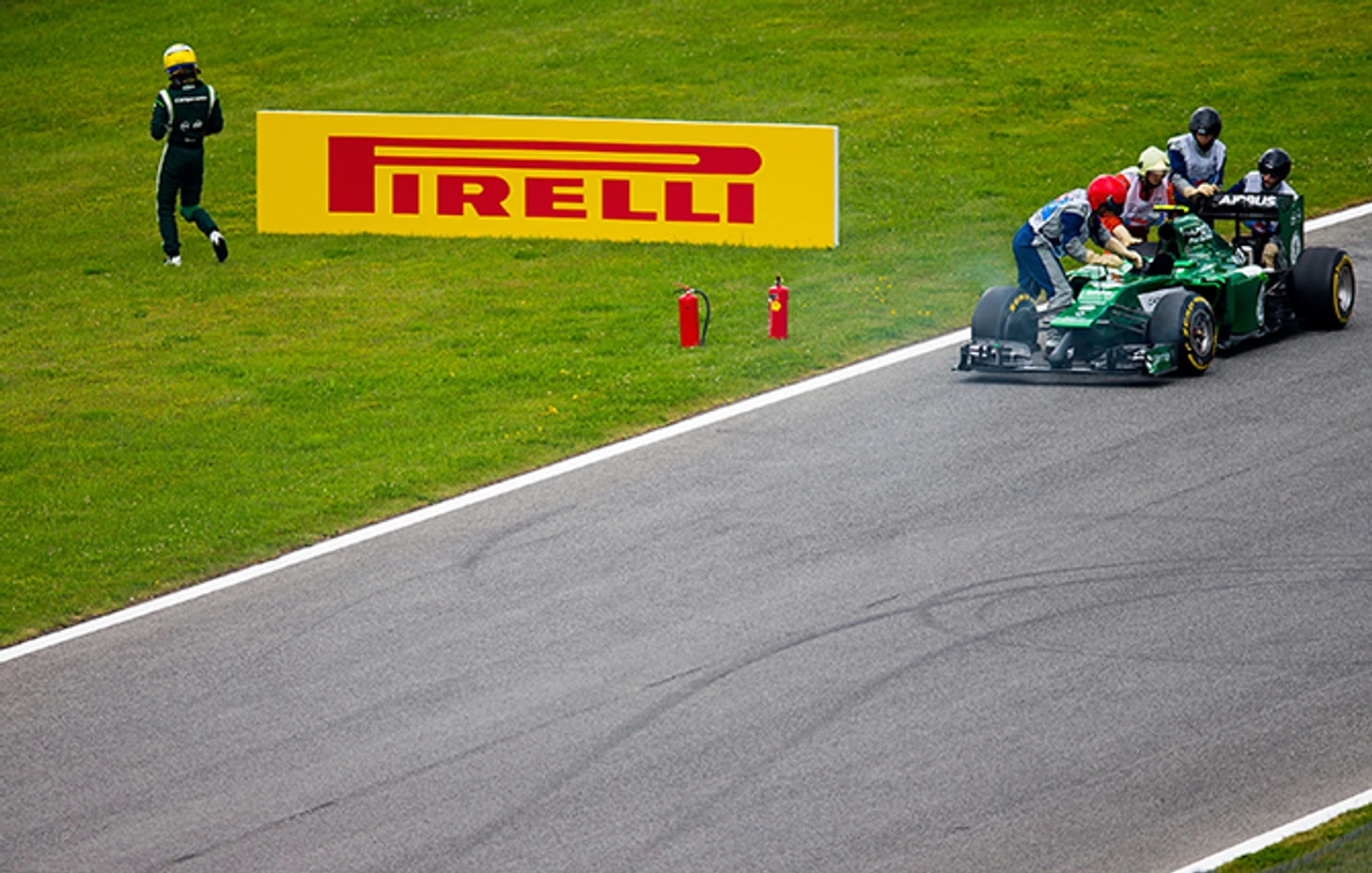 Лишившись необходимых средств на существование, «Катерхэм» попытался найти необходимые деньги, приторговывая местами в кокпите. В течение сезона за малайзийскую команду выступали пять пилотов. Камуи Кобаяси, несмотря на неплохую скорость, без спонсоров никому не нужен, поэтому в Бельгии японца подменял известный чемпион в гонках на выносливость Андре Лоттерер. Пробыв за рулем болида «Формулы-1» всего несколько десятков кругов, Андре умудрился сразу же опередить в квалификации безнадежного Маркуса Эрикссона, а затем быстро понял, что за тонущую конюшню гоняться смысла нет.