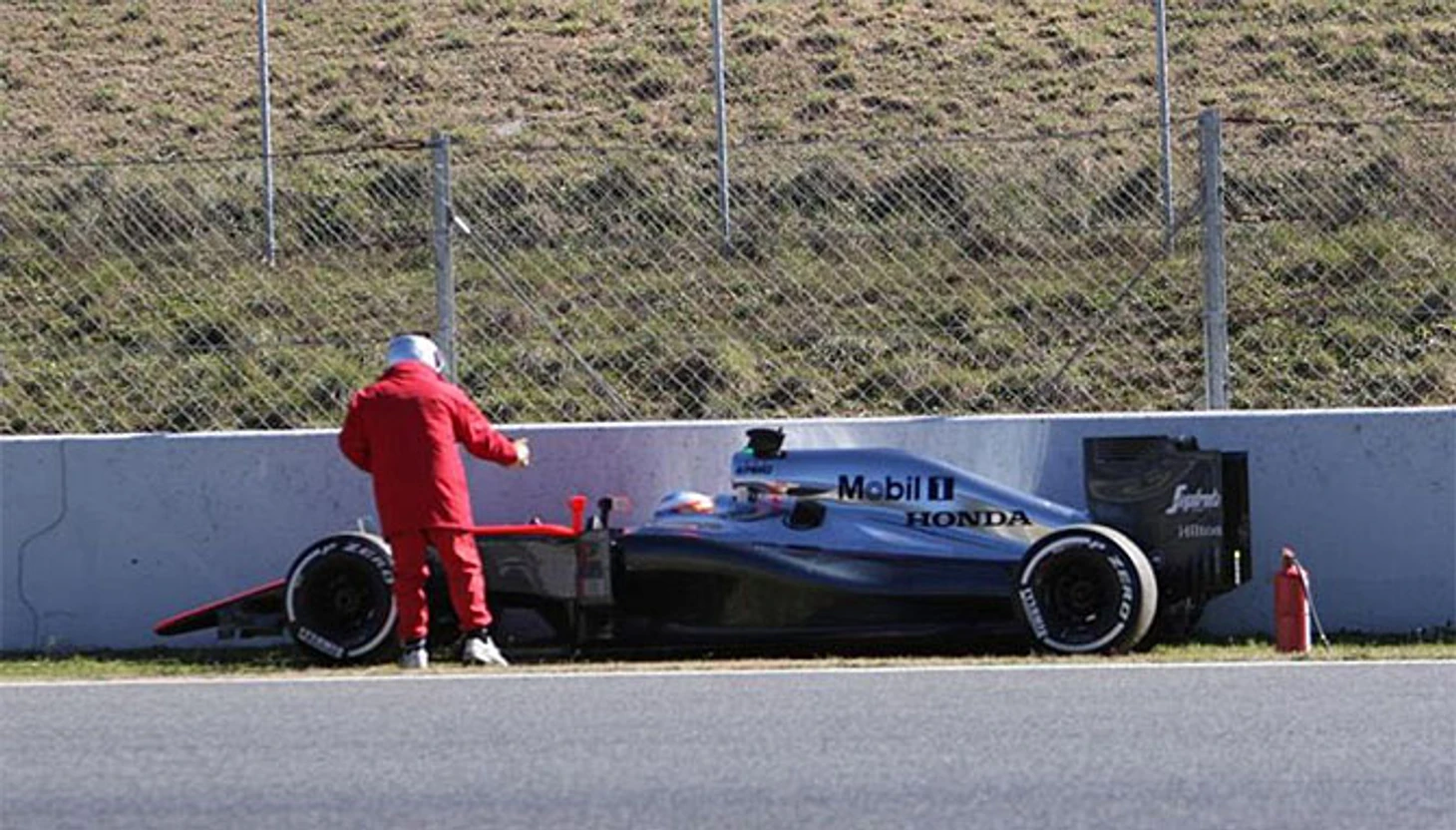 За 20 минут до окончания утренней сессии четвертого дня тестов в Барселоне пилот «Макларена» Фернандо Алонсо попал в аварию. На выходе из третьего поворота испанец потерял управление и врезался в стену.