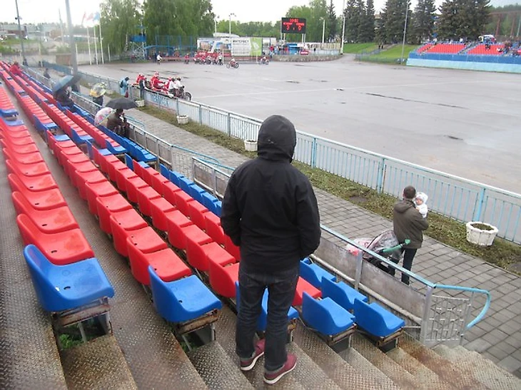 Когда-то подобная афиша могла собрать полные трибуны мотобольных стадионов. Теперь у «Ковровца» и трибун толком не осталось, жители Видного присытились постоянными победами и почти потеряли интерес к команде. За происходящим с трибун наблюдало порядка 250 зрителей. Возможно, от части такую небольшую посещаемость можно записать на совесть дождя, который зарядил ещё во время моего отъезда с Автозаводской и шедшего весь вечер.