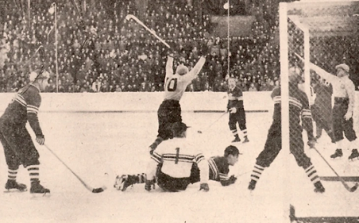 20 февраля 1955 года. Стокгольм. Олимпийский стадион. 22 182 зрителя. - 15°C. Финал чемпионата Швеции. «Эребру» - «Эдсбюн» - 7:1 (5:1). В атаке автор единственного гола «Эдсбюна» правый крайний нападающий Свен Прим (digitaltmuseum.se)