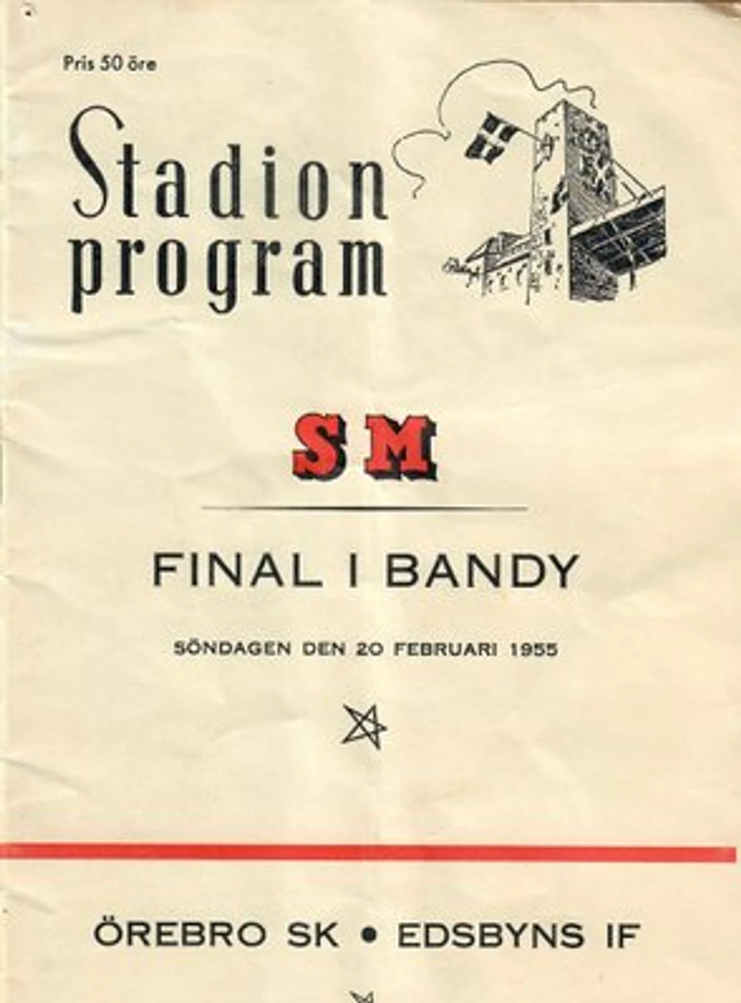 Обложка программки к финальному матчу чемпионата Швеции между «Эребру» и «Эдсбюном», состоявшемуся 20 февраля 1955 года в Стокгольме (blohm.one)
