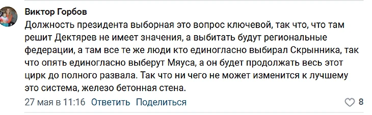 Наши статьи про скорую смену власти в хоккее с мячом вызвали широкое обсуждение. Материалы опубликовали главные паблики, посвященные русскому хоккею, например, «Бенди+», «Bandyvesti». И сегодня, проанализировав комментарии, мы делаем выводы – чего же хочет общественность.