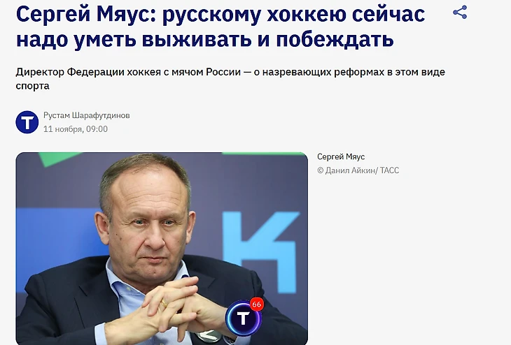По сути, интервью Мяуса превратилось в изложение его предвыборной программы. Он много рассуждает о будущем. Говорит о реформе исполкома, о появлении наблюдательного совета, выносит предложения по изменению регламента, рассуждает о медийности, возвращении ушедших клубов. Ну прямо-таки готовый кандидат на выборы нового главы ФХМР.