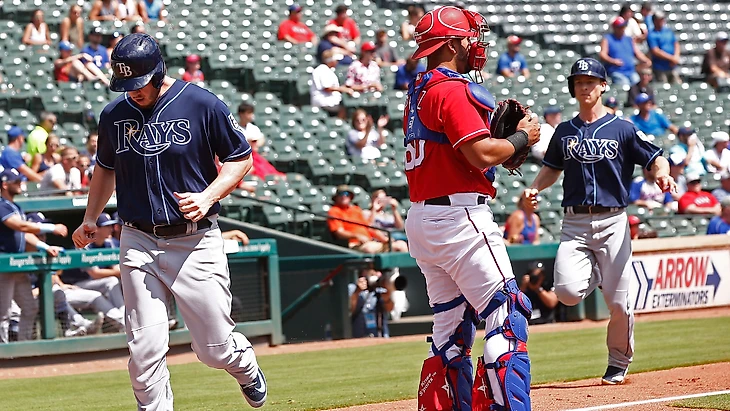 "Техас Рейнджерс"-"Тампа-Бэй Рейс" 3:9.Во втором иннинге Джей Бауэрс выбил дабл (19),а Си-Джей Крон и Джои Вендл вывели гостей вперёд.В 3 иннинге Томми Фэм выбил хоум-ран (18),увеличив отрыв гостей.В 4 иннинге Мэтт Даффи выбил дабл (22),а Хесус Сукре и Маллекс Смит сделали отрыв ещё больше.Затем Си-Джей Крон выбил трипл (1) и Мэтт Даффи забежал в дом.Хозяева ответили хоум-раном (13) Адриана Белтре.В 8 иннинге Томми Фэм своим хоум-раном (19) установил итог матча.Реливер гостей Райан Ярбруг (15-5) заработал 44 страйка,один флай-аут и два гранд-аута.