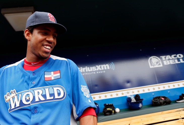 Юный доминиканский аутфилдер Оскар Таварес в форме сборной Мира на матче лучших молодых игроков в 2012 году