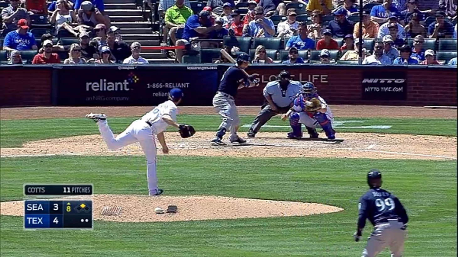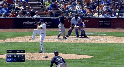 Бывает, что Джонатан Лукрой забывает, как держать биту, а иногда Крис Джименес стягивает ловушку и продает слайдер, прошедший в 1,5 футах от центра дома. После страйка Сигер обратился к судье по поводу питча, но он не жаловался — несмотря на счет и то, что сравнивающий ран находился на второй базе. Вообще, ракурс камеры на боллпарке в Арлингтоне абсолютно ужасен и не дает истинное понимание того, насколько далеко прошел мяч от зоны.