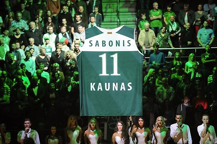В субботу в Каунасе в рамках празднования 70-летия «Жальгириса» состоялась торжественная церемония, посвященная Арвидасу Сабонису. Под своды Жальгирис-Арены была поднята майка с номером 11, под которым выступал легендарный литовский центровой.