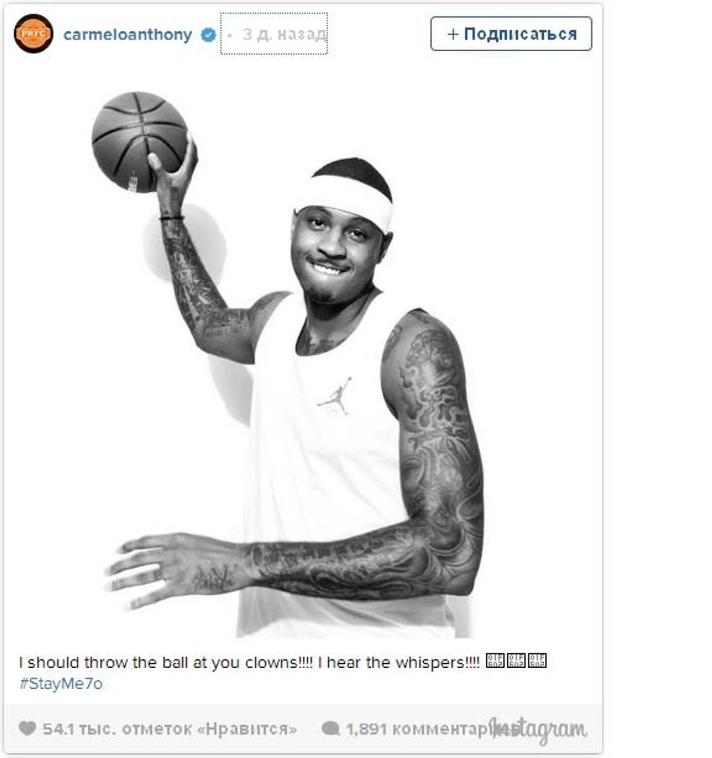 Форвард «Нью-Йорка» Кармело Энтони выразил возмущение в соцсетях после того, как болельщики подвергли сомнению его статус «элитного игрока».
