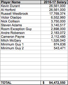 вариант шикарный, но справедливо встает вопрос - а что там от скамейки Тандер останется, если еще и большой контракт Эла повесить? со скамейки будут выходить Пейн, Макгэри и Коллисон и, если повезет, пара ветеранов каких-нибудь