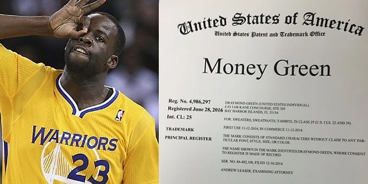 Форвард «Голден Стэйт» и клиент юридической фирмы «Heitner Legal» Дрэймонд Грин зарегистрировал торговую марку «Money Green».