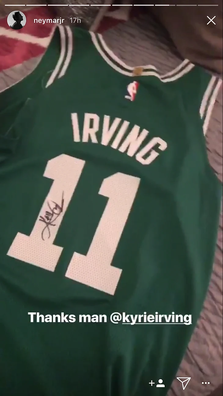 Нападающий футбольного клуба «ПСЖ» Неймар продемонстрировал в социальной сети баскетбольную майку с автографом Кайри Ирвинга, которую он получил от разыгрывающего «Бостона» в качестве подарка.