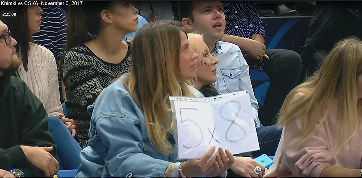 Жена защитника «Химок» Алексея Шведа во время матча подмосковной команды с ЦСКА показала лист бумаги с надписью «5x8», намекая на то, что судейская бригада находится на стороне армейцев.