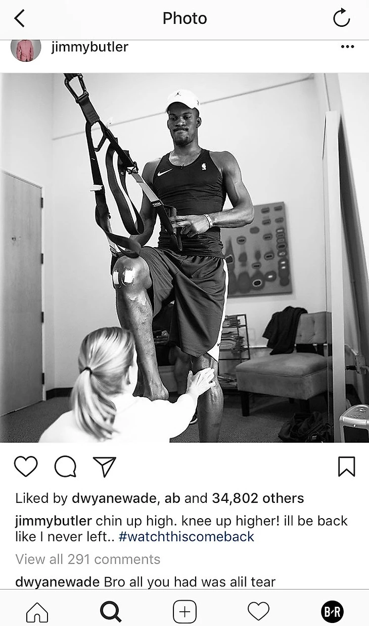 Атакующий защитник «Майами» Дуэйн Уэйд посмеялся над звездой «Миннесоты» Джимми Батлером, который опубликовал в Instagram фотографию своей реабилитации от травмы.