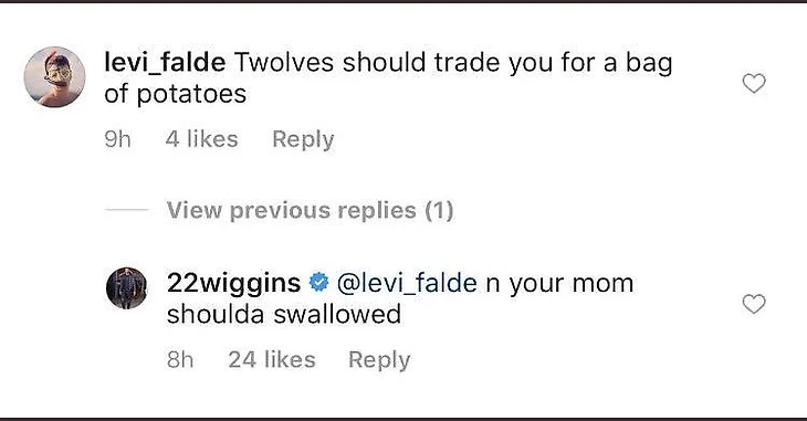 Форвард «Миннесоты» Эндрю Уиггинс ответил на критичный комментарий болельщика в свой адрес.