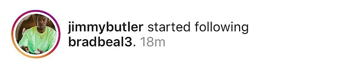 Звездный новобранец «Хит» Джимми Батлер подписался на защитника «Уизардс» Брэдли Била в инстаграме.