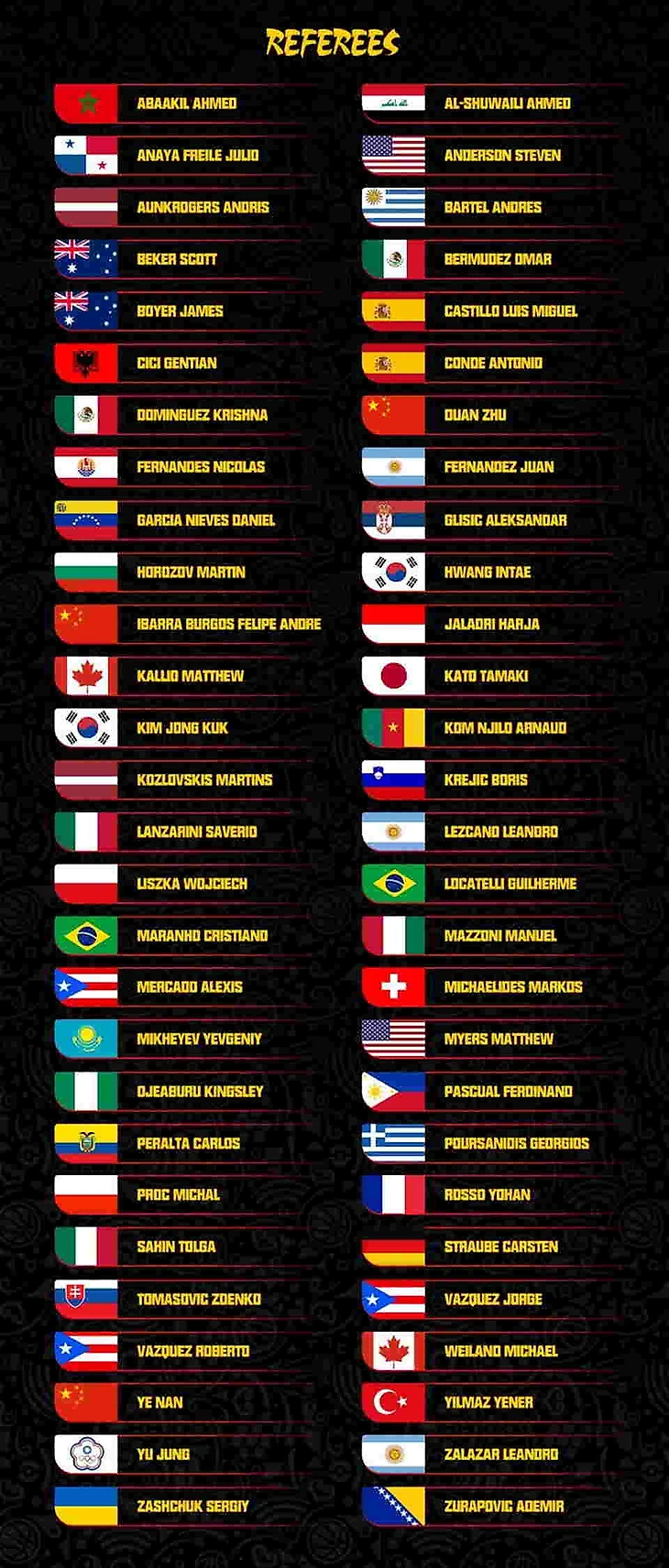 56 арбитров представляют 40 стран. В их числе украинец Сергей Защук.
