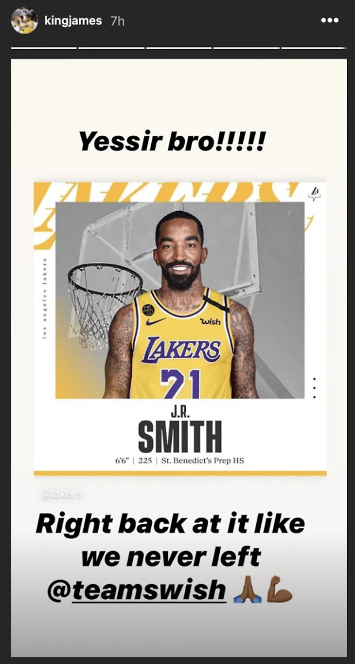 Лидер «Лейкерс» Леброн Джеймс поприветствовал новобранца команды Джей Ар Смита в инстаграме.