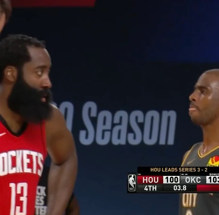Крис Пол смерил взглядом Джеймса Хардена на последних секундах 6-го матча