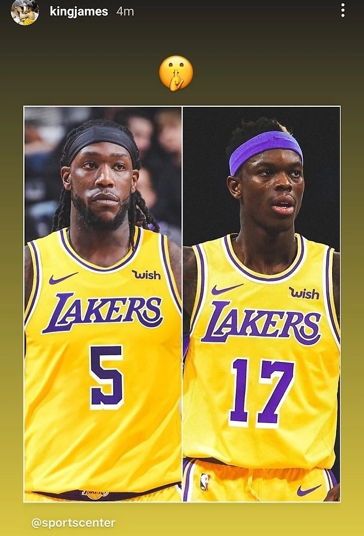 Звездный форвард «Лейкерс» Леброн Джеймс отреагировал в инстаграме на переход в команду Монтреза Харрелла и Денниса Шредера.