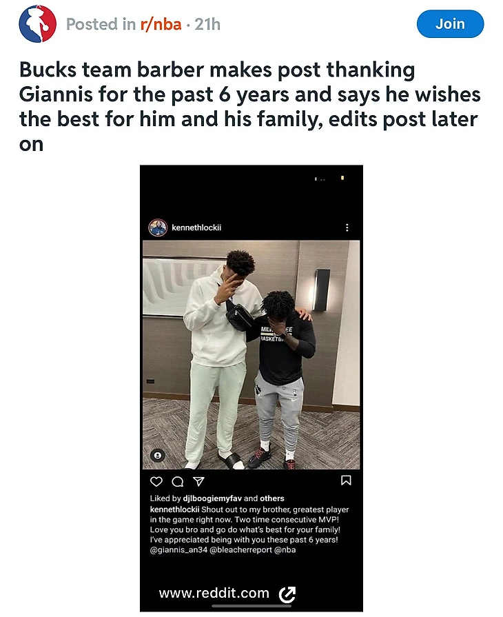 Командный парикмахер «Милуоки» попрощался с Яннисом в инстаграме, затем удалил пост