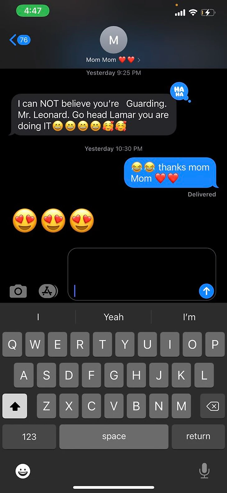 «Не могу поверить, что ты держишь мистера Ленарда. Продолжай в том же духе, Ламар, у тебя получается делать это», – написала бабушка баскетболиста.