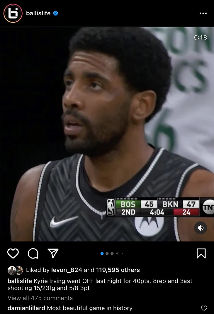 Разыгрывающий «Портленда» Дэмиан Лиллард выразил восхищение игрой Кайри Ирвинга («Бруклин») в матче против «Бостона» 11 марта.