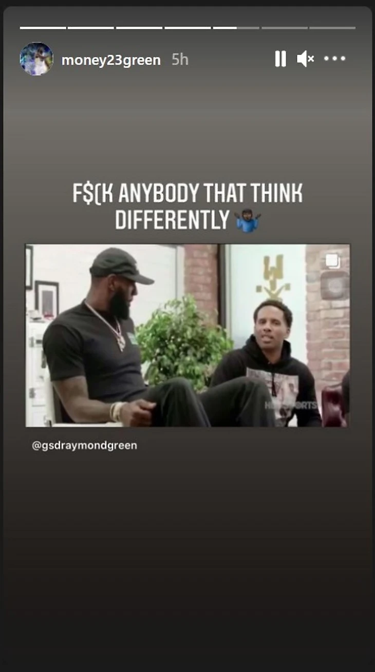 Грин подтвердил свою позицию, запостив в сторис инстаграма кадр из ток-шоу, в котором он уверял Леброна Джеймса, что нормально называть себя величайшим игроком всех времен.