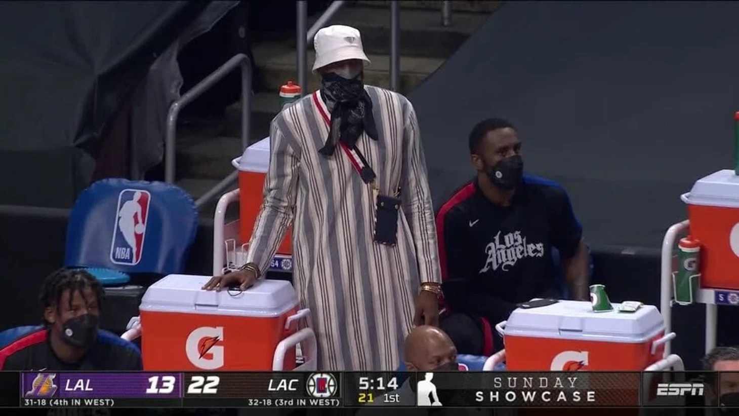 Травмированный форвард «Клипперс» Серж Ибака пришел на матч против «Лейкерс» в странном наряде.