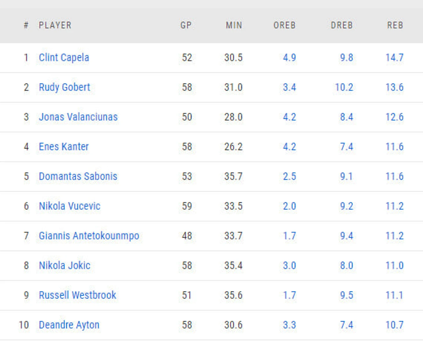 Сам Энес занимает 4-е место в нынешнем чемпионате по подборам – 11,6 за матч. Единственный представитель США в первой десятке – разыгрывающий «Уизардс» Расселл Уэстбрук (9-е место, 11,1).