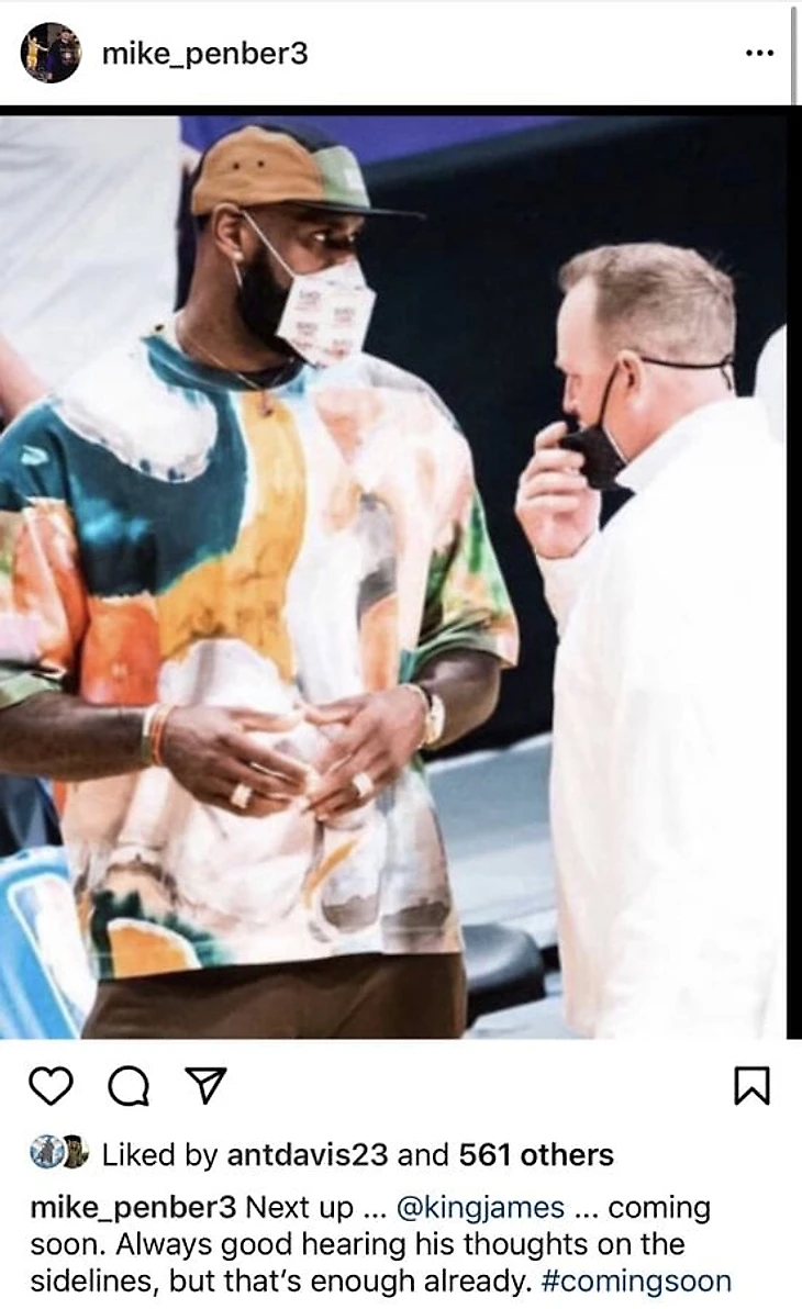 Ассистент главного тренера «Лейкерс» Майк Пенберти намекнул на скорое возвращение Леброна Джеймса вслед за Энтони Дэвисом.