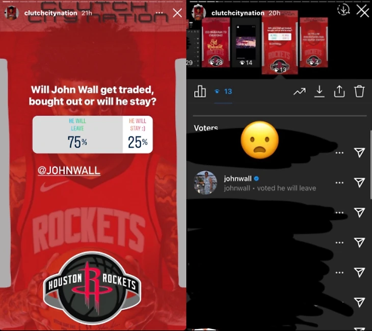 Разыгрывающий «Рокетс» Джон Уолл принял участие в голосовании, которое организовал посвященный клубу аккаунт Clutchcitynation в инстаграме.