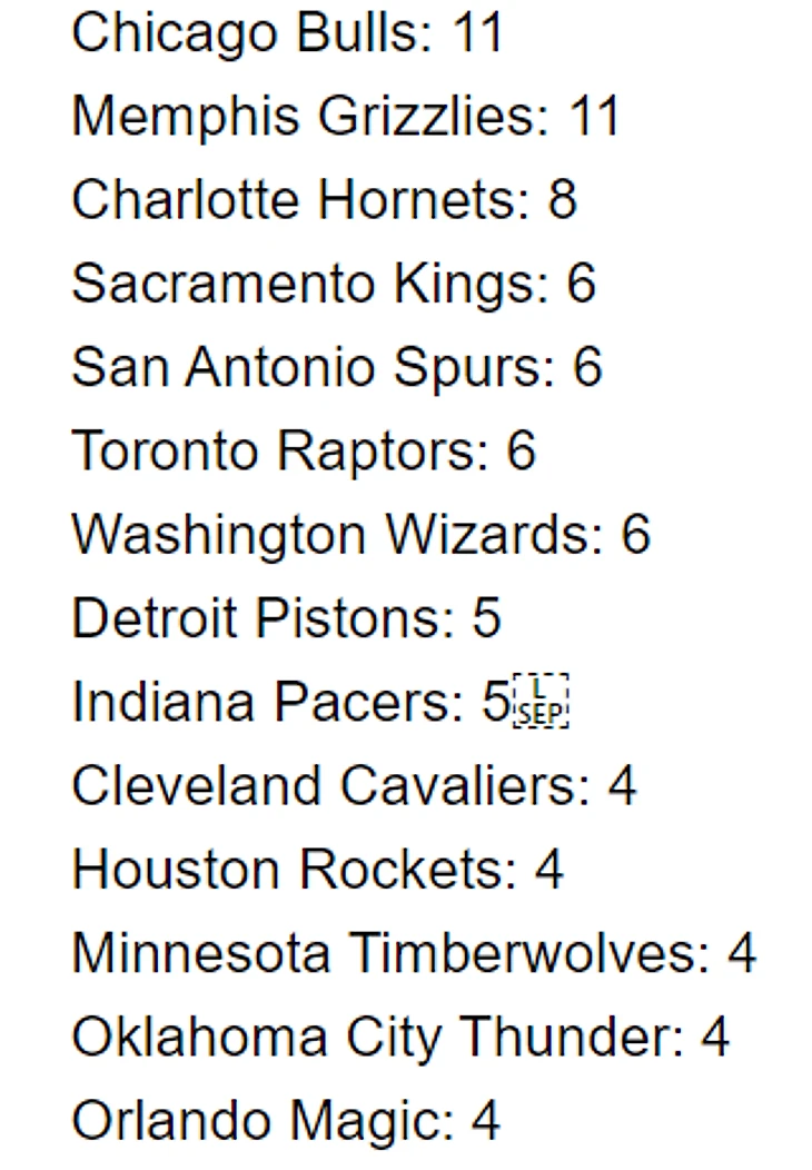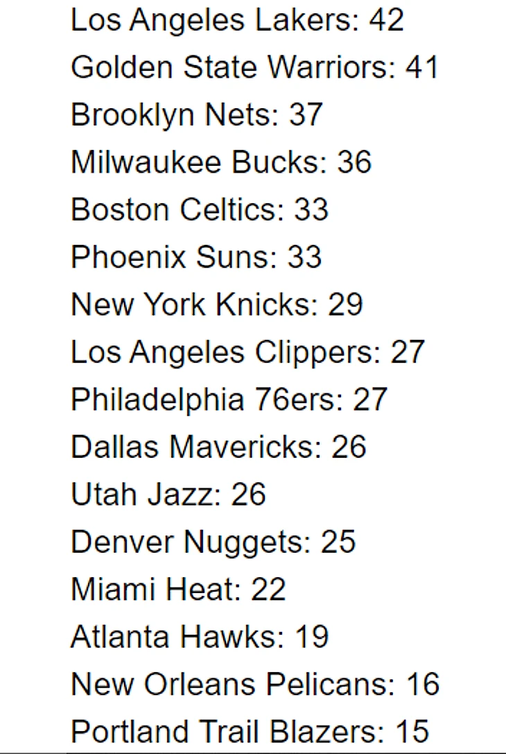 В пятерке помимо «озерников» также «Голден Стэйт» (41), «Бруклин» (37), «Милуоки» (36) и «Бостон» (33).