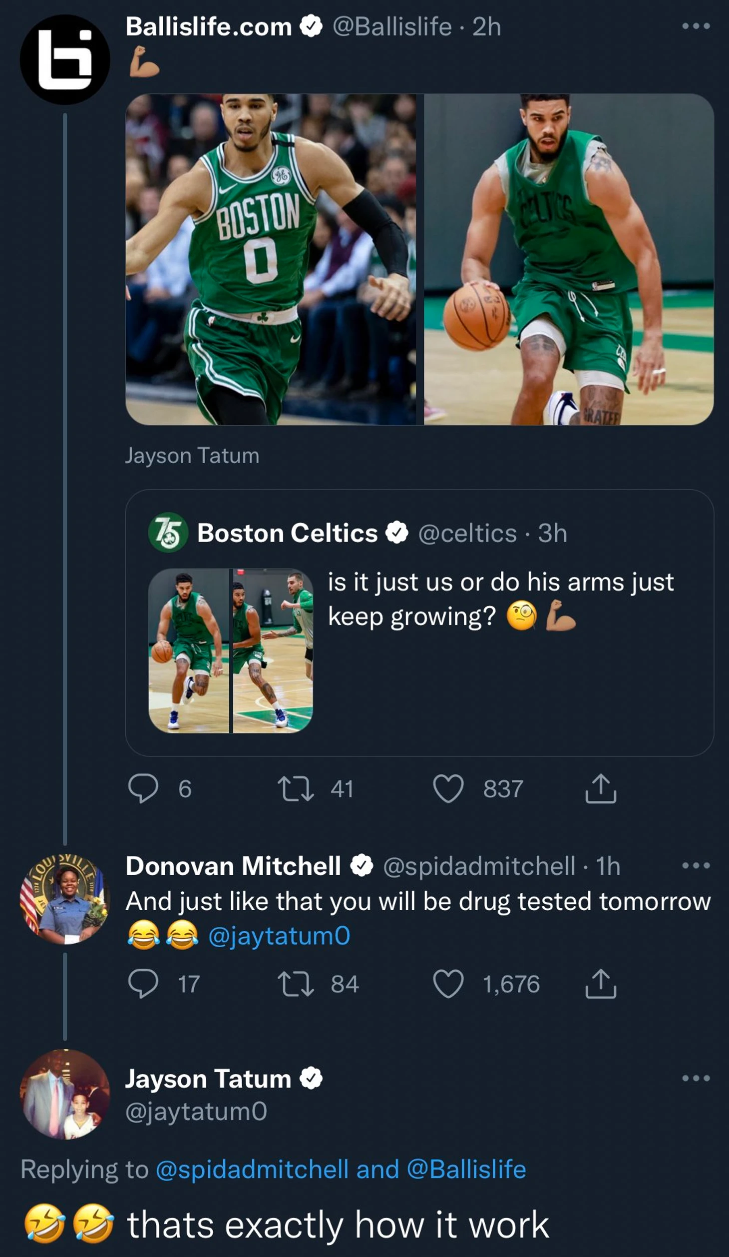 Донован Митчелл пошутил, что нарастившему мускулы Тейтуму предстоит допинг-тест