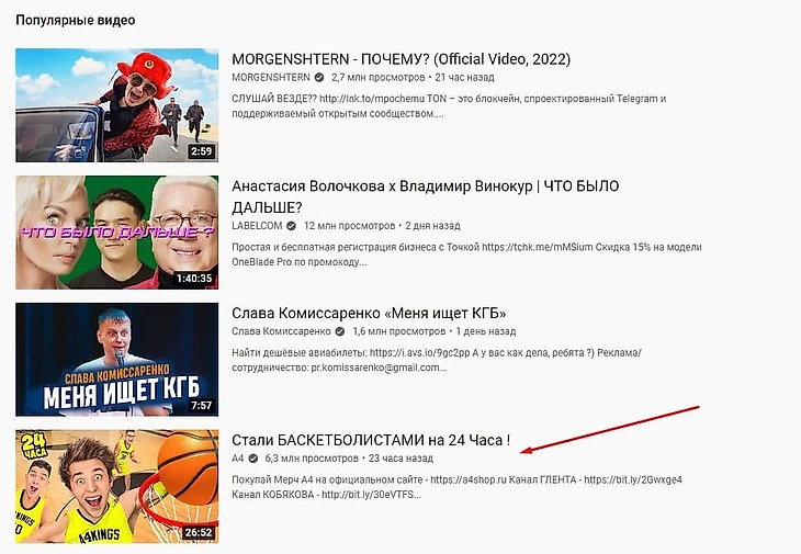 Баскетбольное видео впервые в истории попало в русскоязычные тренды YouTube