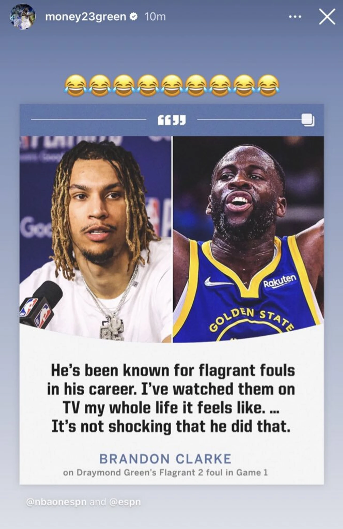 Дрэймонд Грин отреагировал на заявление Брэндона Кларка о своем удалении