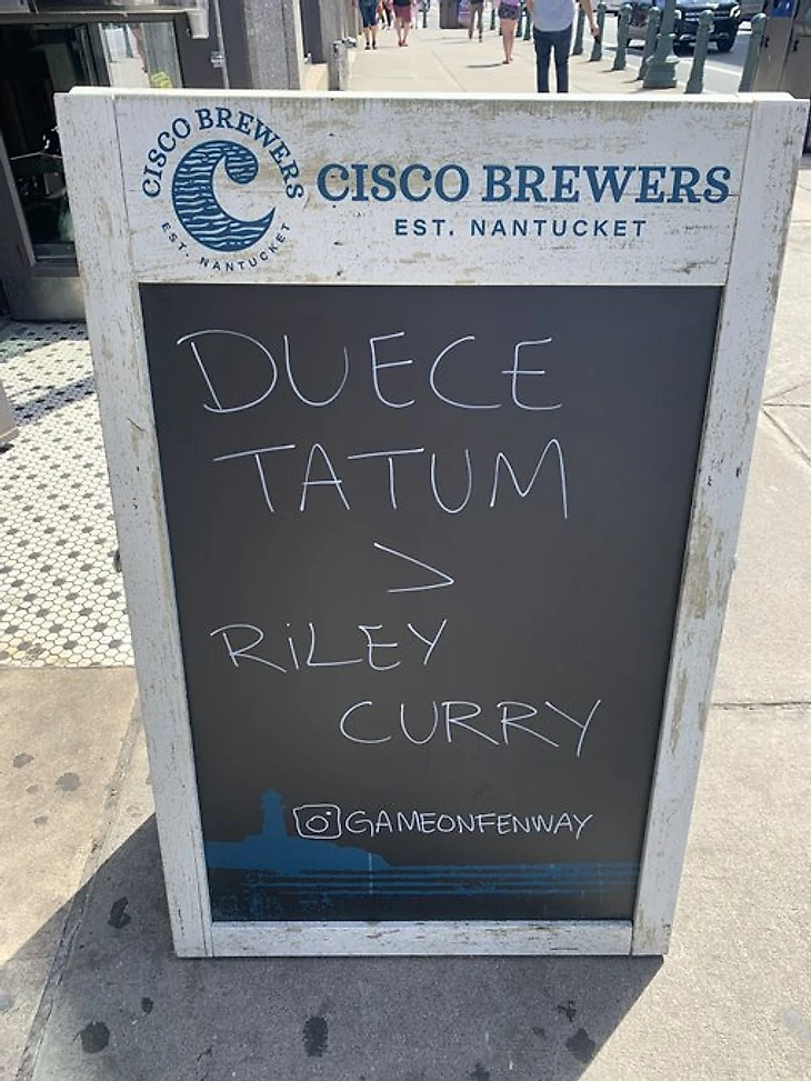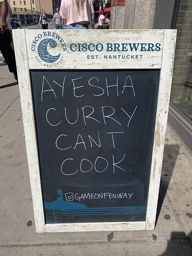 Карри ответил на выпад в сторону жены Айеши со стороны бостонского бара «Game On». Рядом с заведением ранее появились меловые доски с надписями «Айеша Карри не умеет готовить» и «Дьюс Тейтум > Райли Карри».