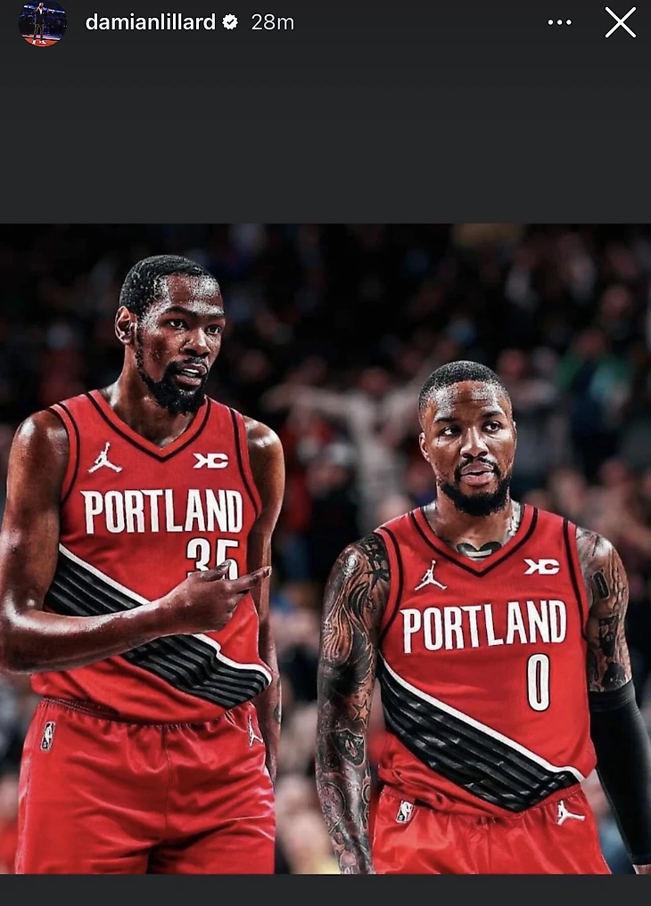 Лиллард опубликовал в инстаграме совместное изображение с Дюрэнтом. Оба игрока представлены в форме «Блэйзерс».