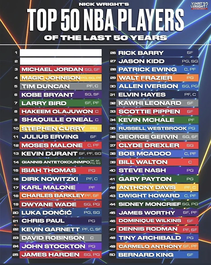 Ник Райт поставил Джордана на 3-е место в списке лучших игроков НБА последних 50 лет