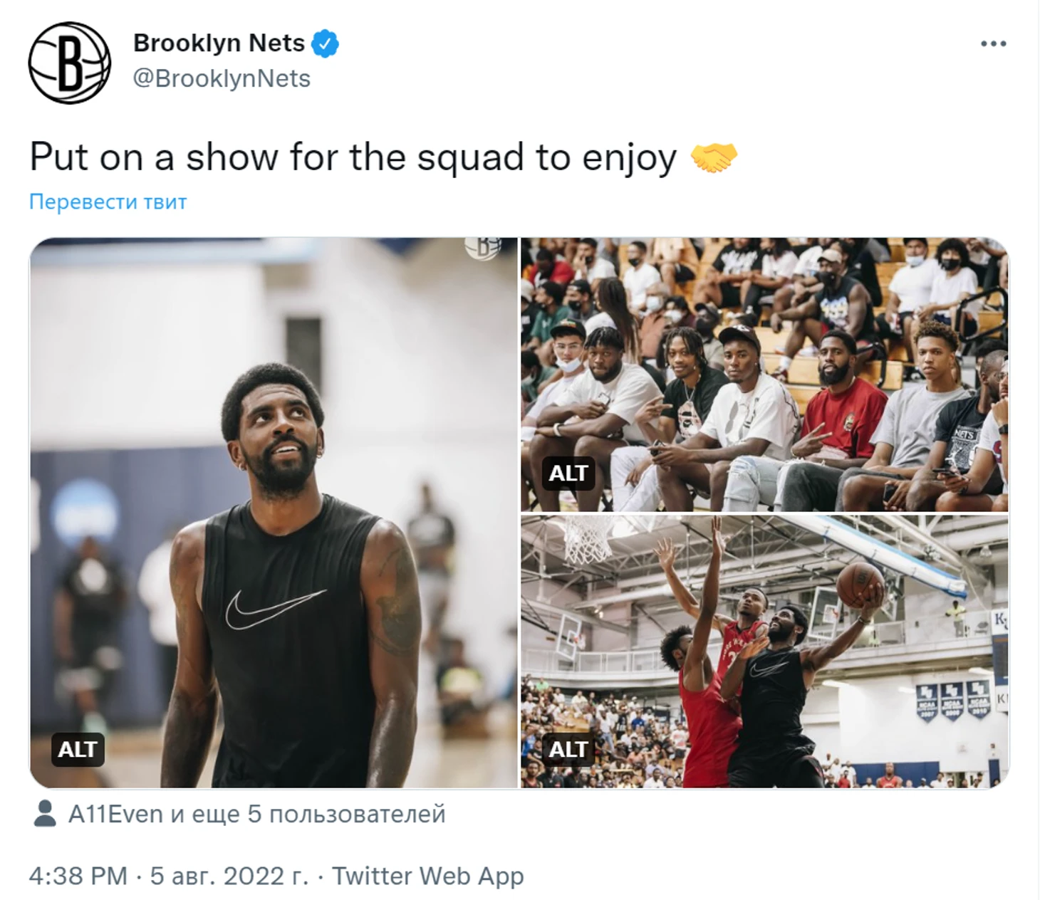 Твиттер «Нетс» выложил фотографии и видео с матча в Нью-Джерси с участием Ирвинга