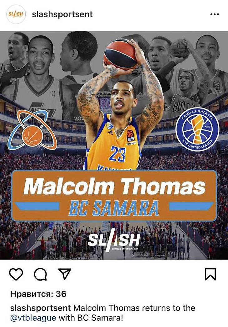 Форвард Малкольм Томас (33 года, 206 см) продолжит карьеру в «Самаре», сообщает агентство игрока SLASH Sports.