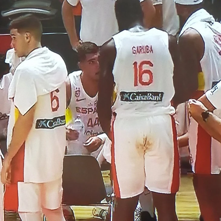 Форвард сборной Испании и «Рокетс» Усман Гаруба был замечен в испачканных шортах во время матча сборной Испании против Нидерландов в квалификации ЧМ-2023.